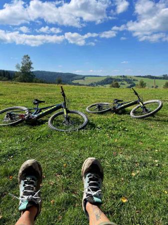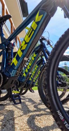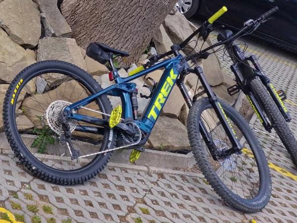 Wypożyczalnia rowerów elektrycznych z pełnym zawieszeniem tzw. full elektryk. Rower z pełnym zawieszeniem nie obciąża kręgosłupa przy zjazdach - drgania wytracane są dzięki tylnemu zawieszeniu.